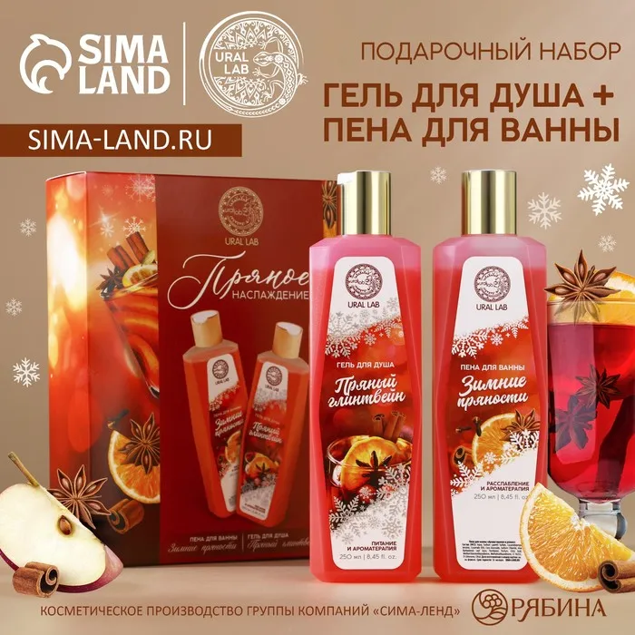 Подарочный набор «Пряное наслаждение»: гель для душа и пена для ванны, 2×250 мл, URAL LAB