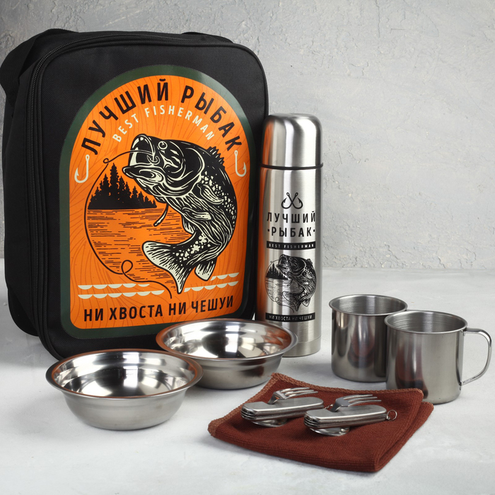 Набор посуды для пикника «Лучший рыбак»: термос 0.5 л, тарелка 300 мл, 2 шт., кружка 200 мл, 2 шт., мультитул 2 шт.