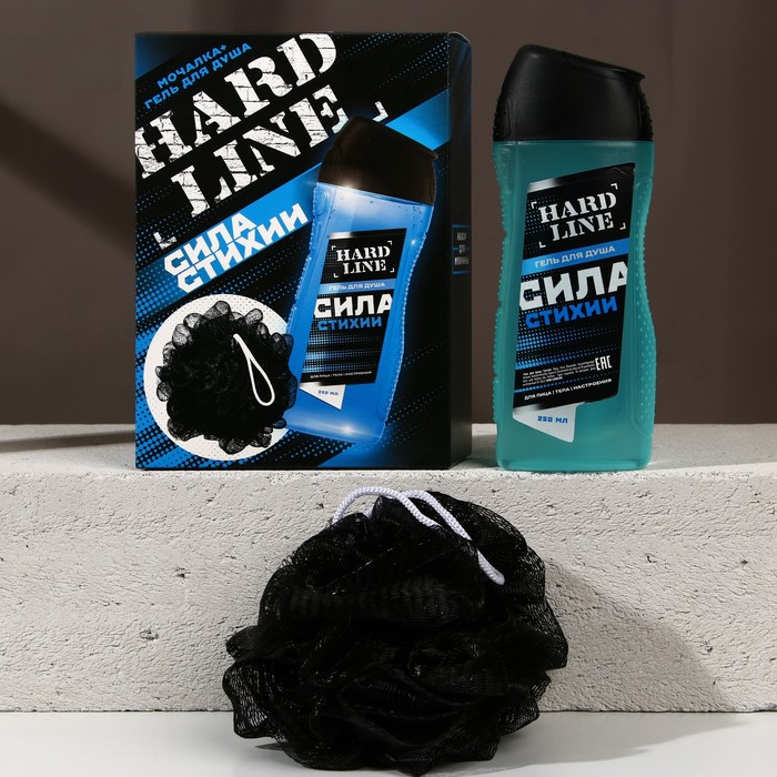 Подарочный набор косметики «Сила стихии», гель для душа 250 мл и мочалка для тела, HARD LINE