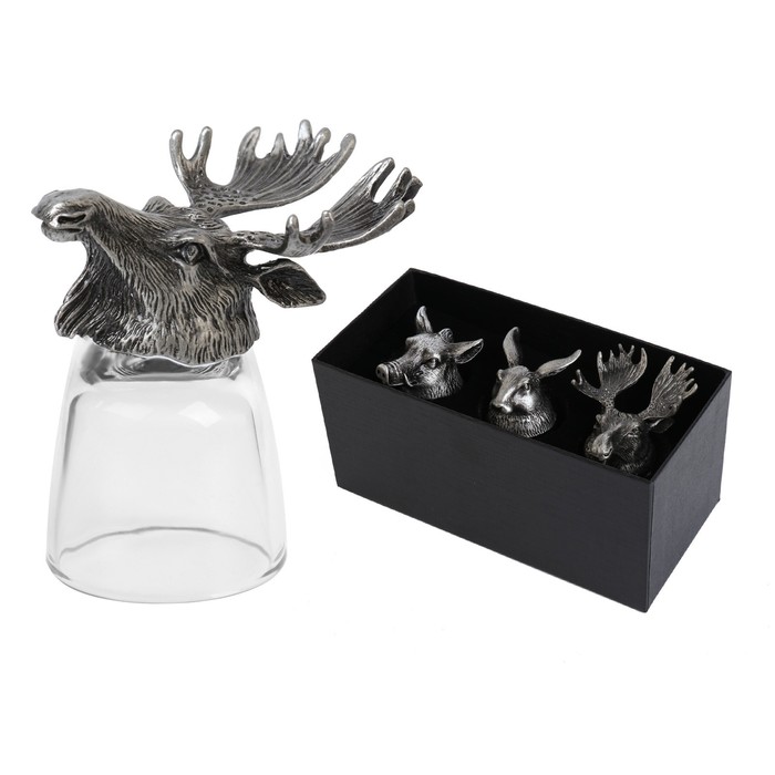 Рюмки для водки «Рыбалка», подарочный набор на 3 персоны, 50 мл, стекло, металл, цвет бронза