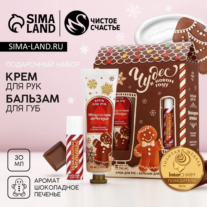 Новогодний подарочный набор косметики «Чудес!»: крем для рук 30 мл и бальзам для губ 10 г, Чистое счастье
