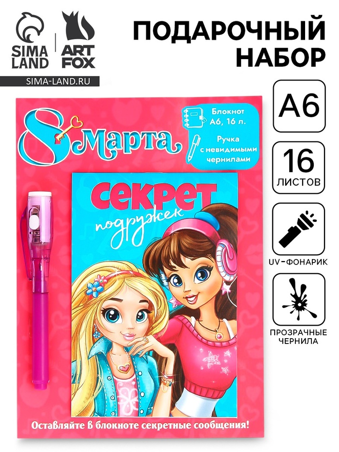 Подарочный набор «8 марта: Секреты подружек», волшебная ручка и блокнот