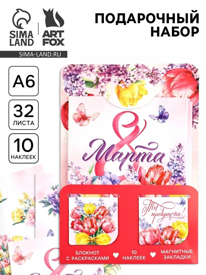 Подарочный набор «8 марта! Ты прекрасна!», блокнот А6, 32 листа, наклейки, магнитные закладки