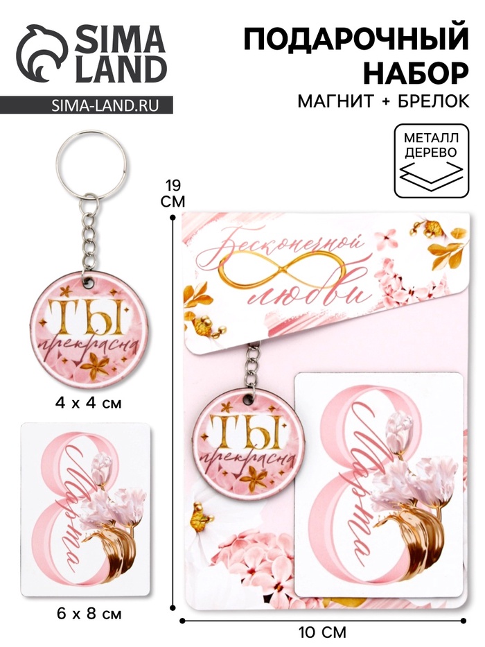 Подарочный набор «Бесконечной любви» 8 марта, магнит + брелок