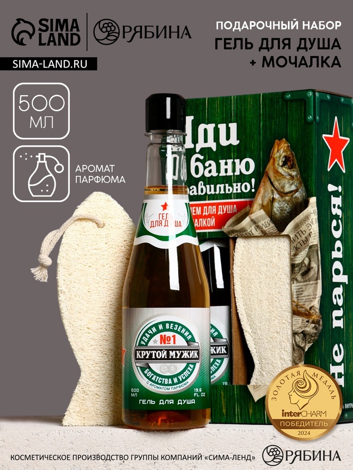 Подарочный набор «Крепкому мужику», гель для душа во флаконе пиво, 500 мл и мочалка вобла, Чистое счастье