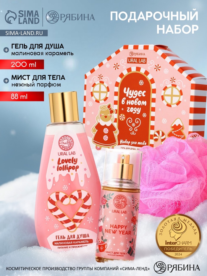 Подарочный набор новогодний «Чудес в Новом году», гель для душа, мочалка и мист, URAL LAB