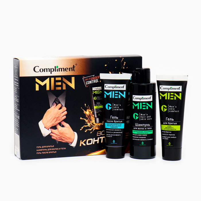 Набор подарочный Compliment 3 предмета: гель для бритья 80 мл + гель после бритья 80 мл + шампунь 200 мл