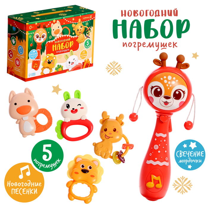 Новогодний набор погремушек, русская озвучка, световые эффекты, 5 погремушек в наборе
