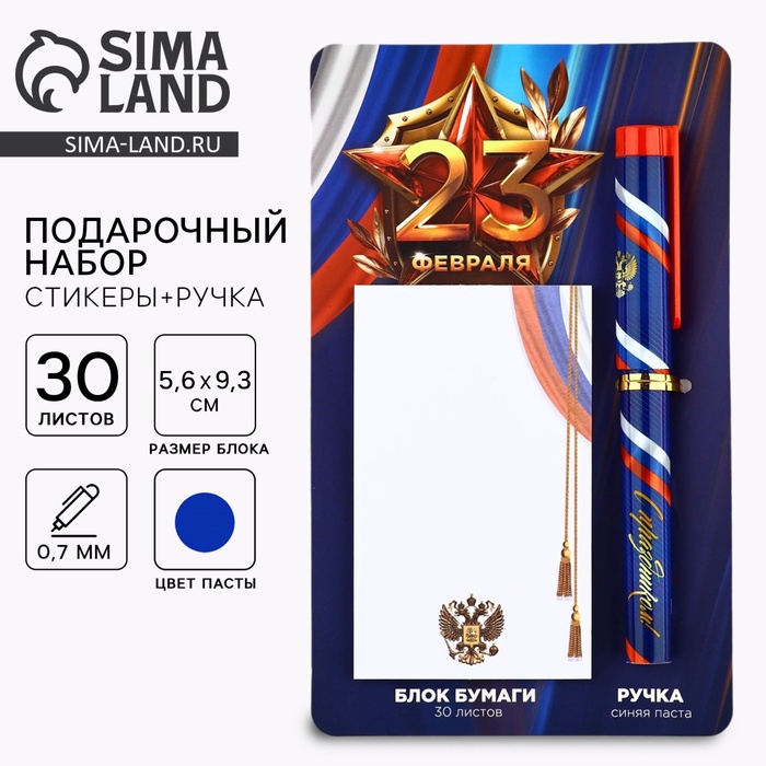Набор подарочный «23 февраля», ручка шариковая и блок бумаги 30 л