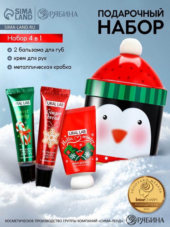 Новогодний подарочный набор косметики: крем для рук, бальзам для губ 2 шт., URAL LAB