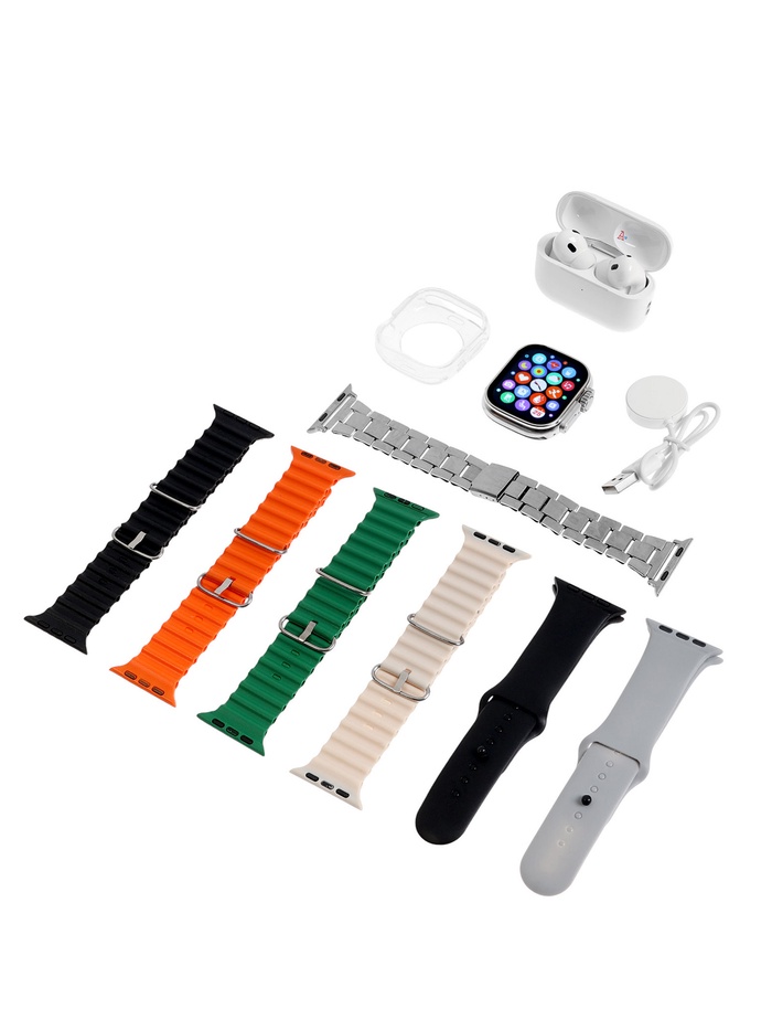 Подарочный набор Watch4, 9 в 1, наушники, смарт-часы, 7 ремешков