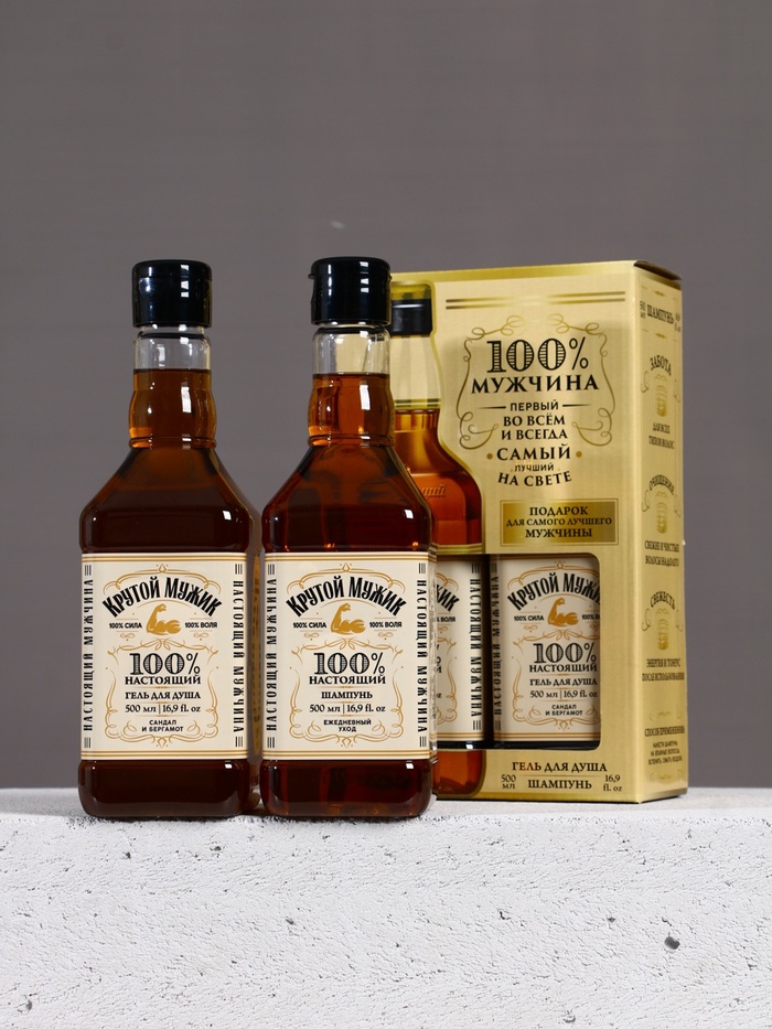 Подарочный набор «Крутой мужик», гель для душа и шампунь для волос во флаконе виски, 2×500