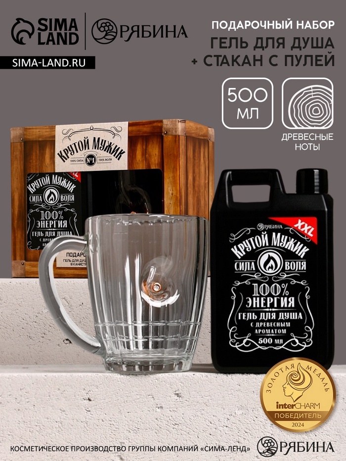 Подарочный набор «Крутой мужик», гель для душа канистра 500 мл и стакан с пулей, HARD LINE