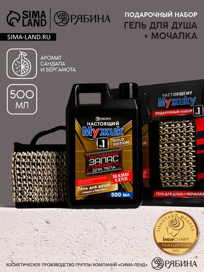 Подарочный набор «Настоящему мужику», гель для душа канистра 500 мл и мочалка лента, HARD LINE