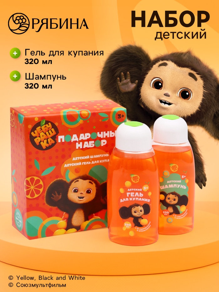 Подарочный набор детский: гель для душа 320 мл, шампунь 320 мл, Чебурашка