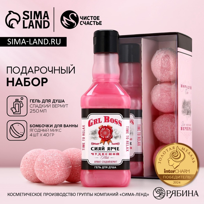 Подарочный набор косметики ЧИСТОЕ СЧАСТЬЕ GRL BOSS: гель для душа и пена для ванны виски, 2×250 мл