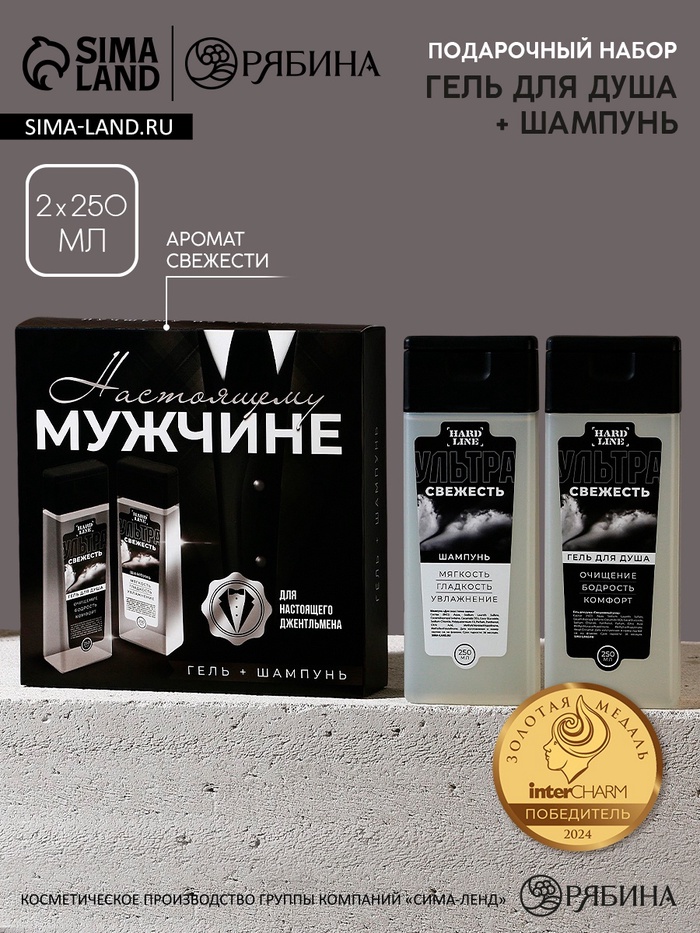 Подарочный набор косметики «Идеальный мужчина», гель для душа 250 мл и шампунь 250 мл, HARD LINE