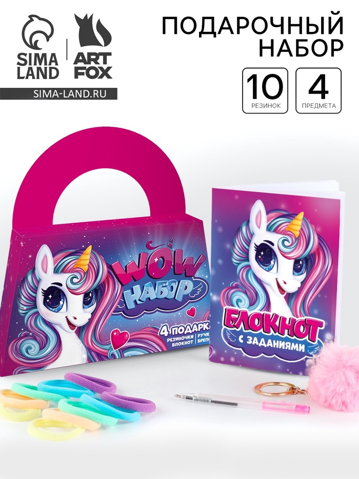 Подарочный набор, в сумке: блокнот, резиночки, брелок, ручка «Единорог»