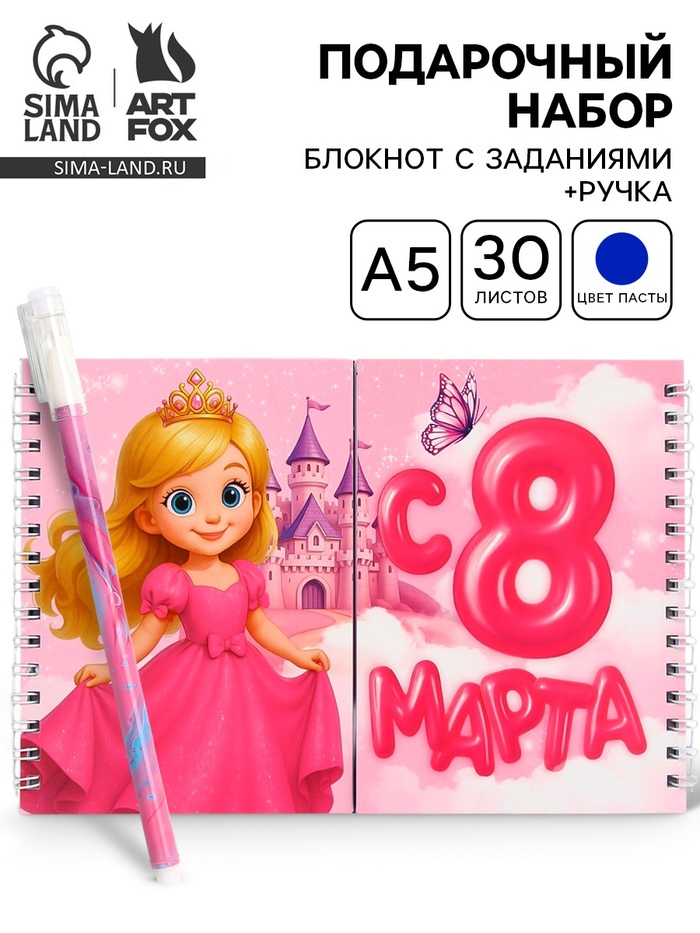 Подарочный набор, двойной блокнот с заданиями, ручка «Принцесса»