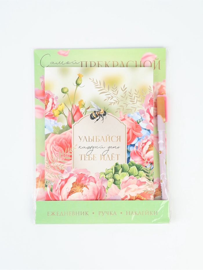 Подарочный набор, ежедневник А5, 80 л., наклейки, ручка «Самой прекрасной»