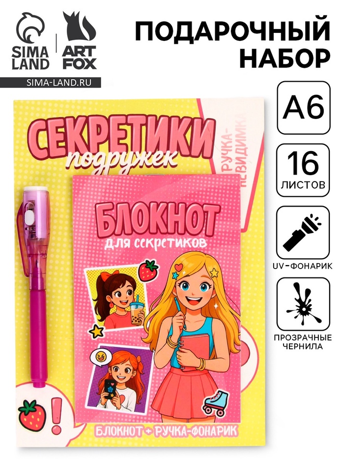 Подарочный набор, ручка шпион, блокнот А6, 16 л. «Секреты подружек»