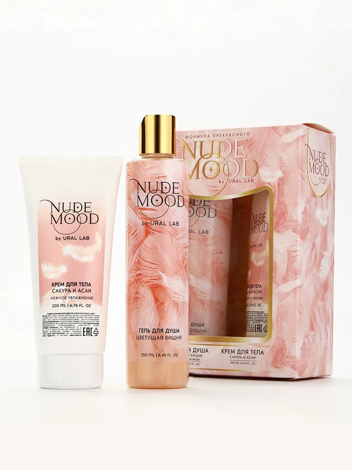 Подарочный набор NUDE MOOD, гель для душа 250 мл и крем для тела 200 мл, аромат вишни, сакуры и асаи, URAL LAB
