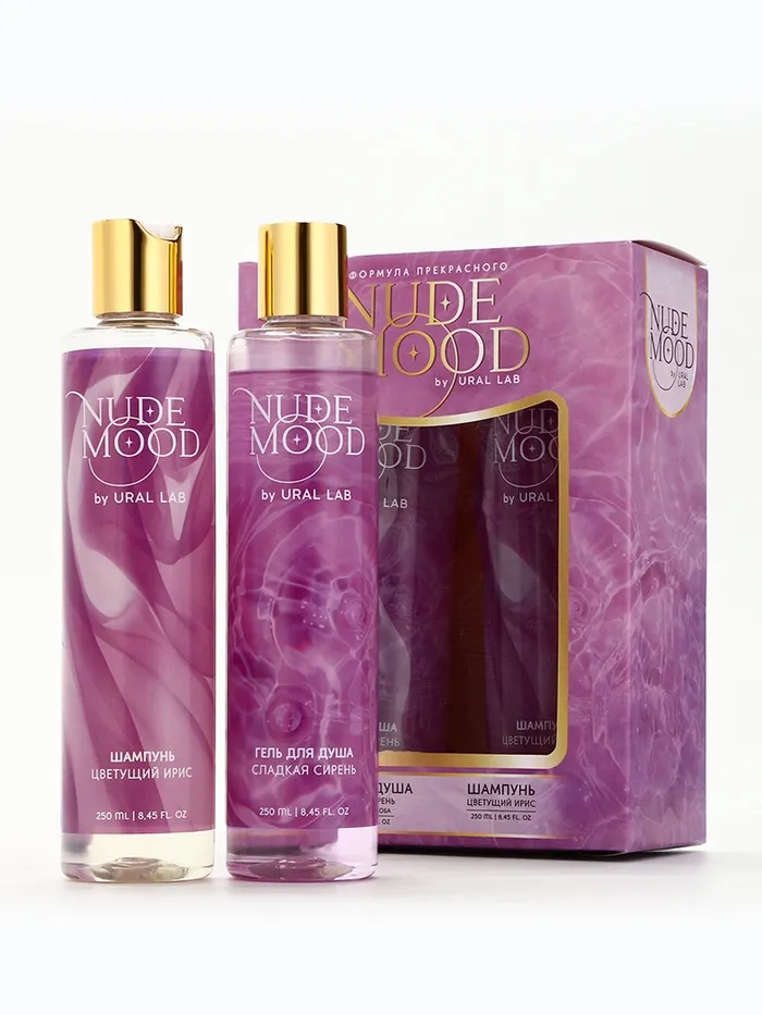 Подарочный набор NUDE MOOD, гель для душа и шампунь для волос, 2×250 мл, аромат ириса и сирени, URAL LAB