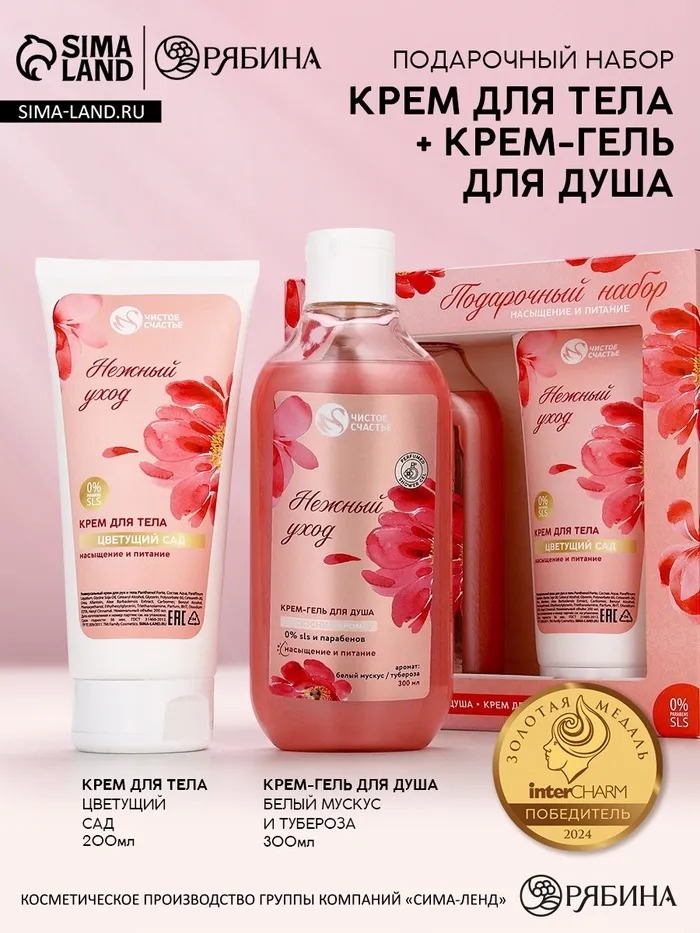 Подарочный набор «Насыщение и питание», гель для душа, 300 мл и крем для тела, 200 мл, Чистое счастье