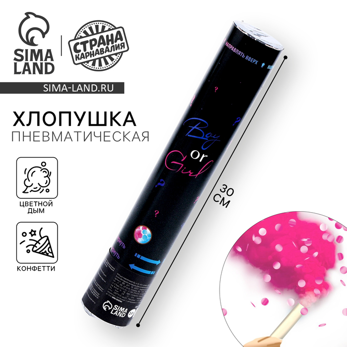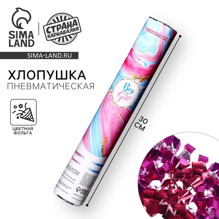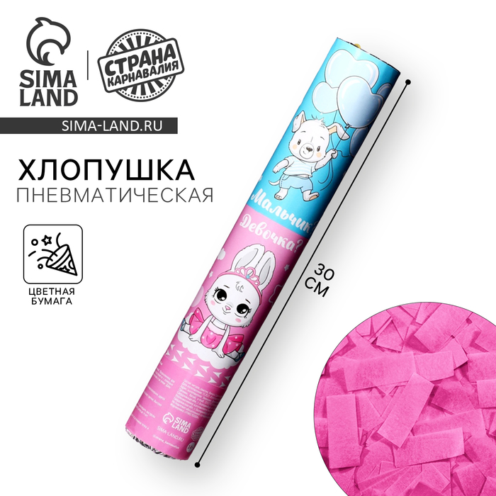 Хлопушка пневматическая на гендер-пати «Мальчик? Девочка?», девочка, 30 см
