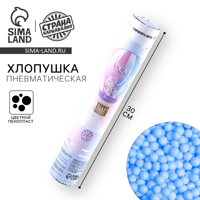 Хлопушка пневматическая на гендер-пати Boy or Girl, мальчик, 30 см