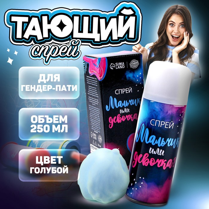 Тающий спрей на гендер пати «Мальчик или девочка», голубой, 250 мл