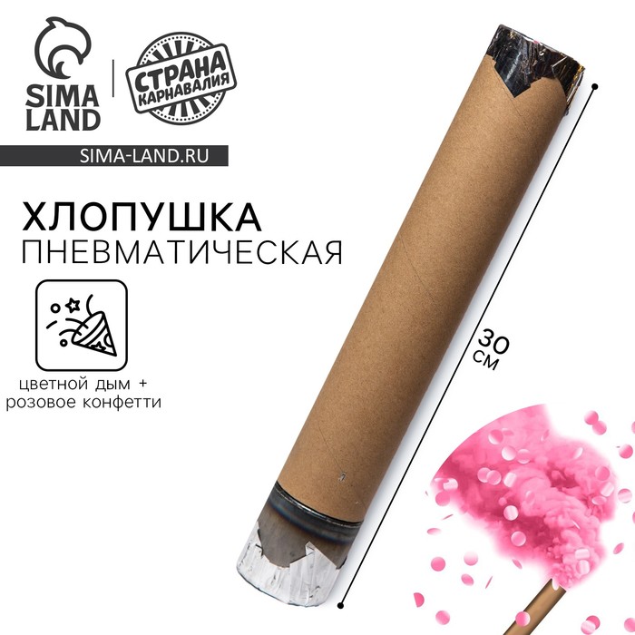Гендер-пати. Хлопушка пневматическая с собственным дизайном «Цветной дым+конфетти», розовый, 30 см