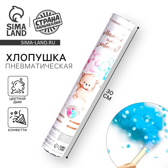 Хлопушка пневматическая на гендер пати «Мальчик или девочка?», мальчик, 30 см