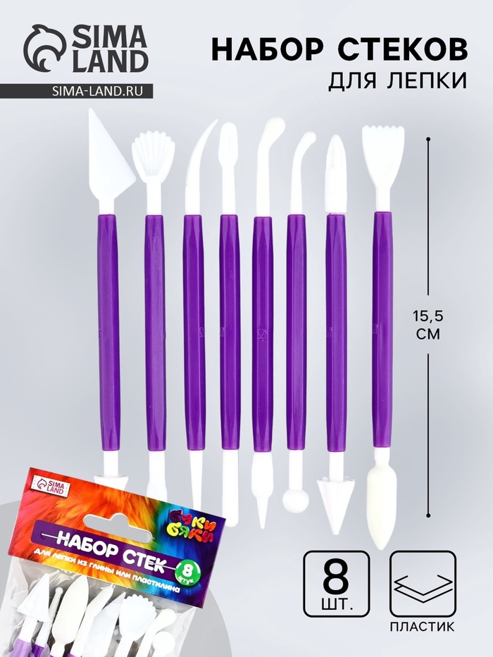 Набор стеков для лепки 8 шт., пластик ТМ Буки Бяки