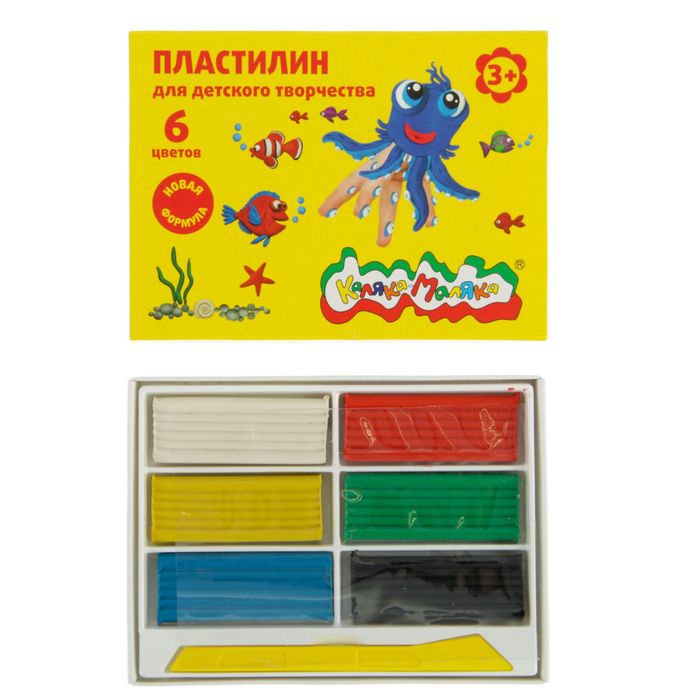 Пластилин «Каляка-Маляка», 6 цветов, 90 г, со стеком