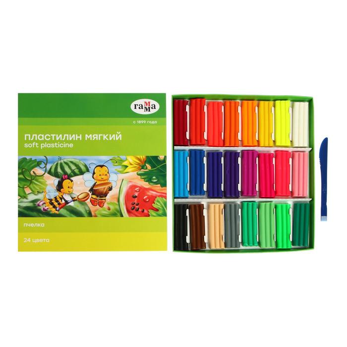Пластилин мягкий (восковой) Гамма «Пчёлка», 24 цветов, 360 г, со стеком, картонная коробка