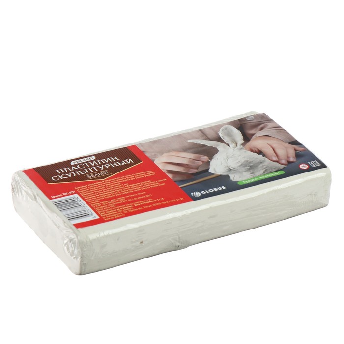 Пластилин скульптурный GLOBUS, мягкий, белый, 500 г