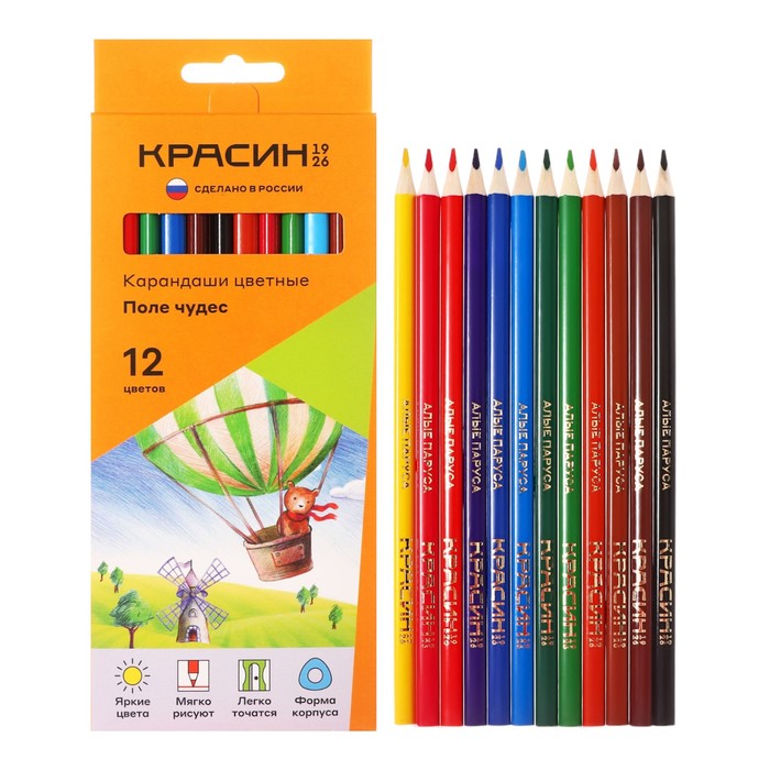 Карандаши цветные «Красин. Поле чудес», трёхгранные, заточенные, европодвес, 12 шт.