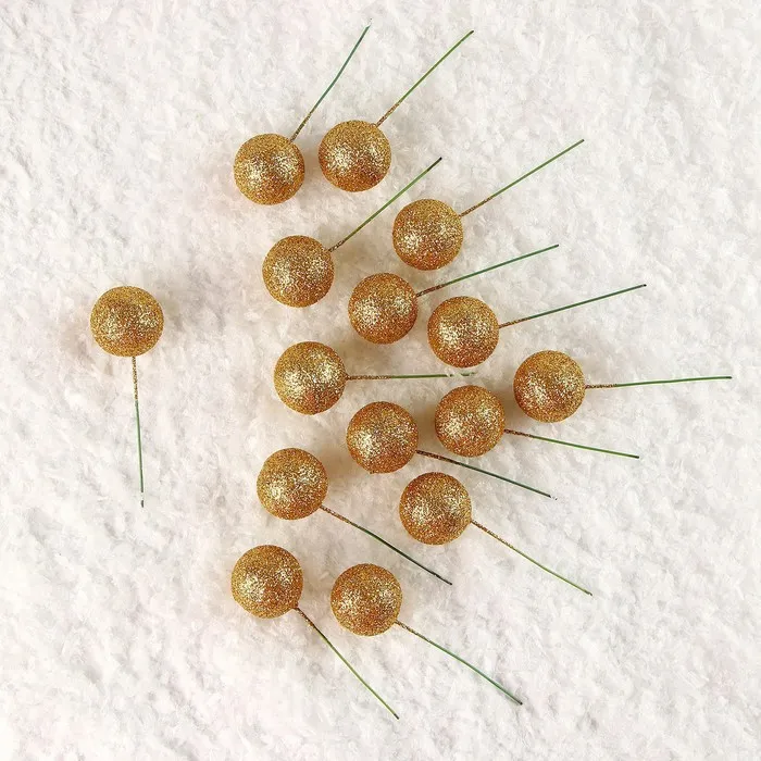 Фигурка для поделок и декора на проволоке «Шар», набор 15 шт., размер 1 шт. — 3 × 9 см, цвет золотой