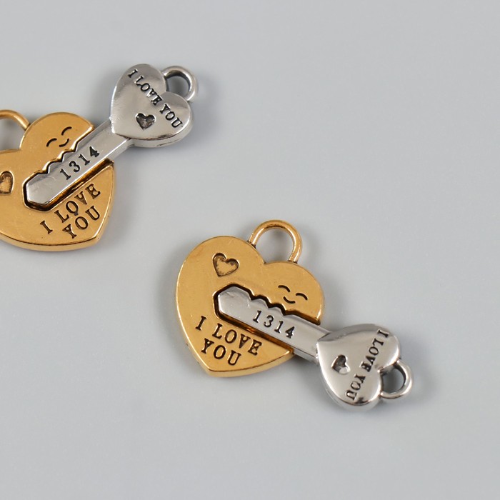 Замок магнитный металл «Ключик и замочек», золото, серебро, 2.3×3.4×0.5 см, (набор 2 половинки)