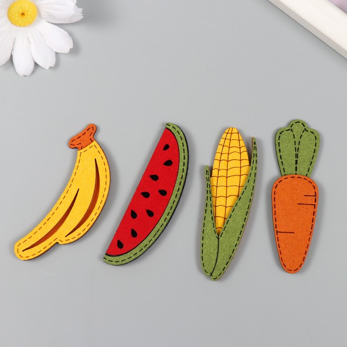 Декор для творчества иск. замша «Фруктики, овощи», 7×2.2 см, МИКС