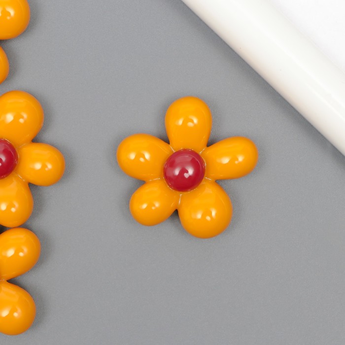 Декор для творчества пластик «Цветок жёлтый с бордовым», 2.8×3×1 см