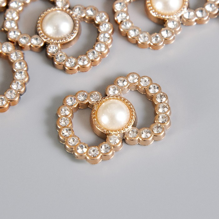 Декор для творчества пластик пряжка «Бант с жемчугом», золото со стразами, 1.9×2.3×0.5 см
