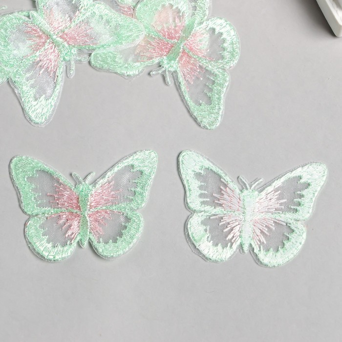 Декор для творчества текстиль вышивка «Бабочка зелёно-розовая», 4.3×5.5 см