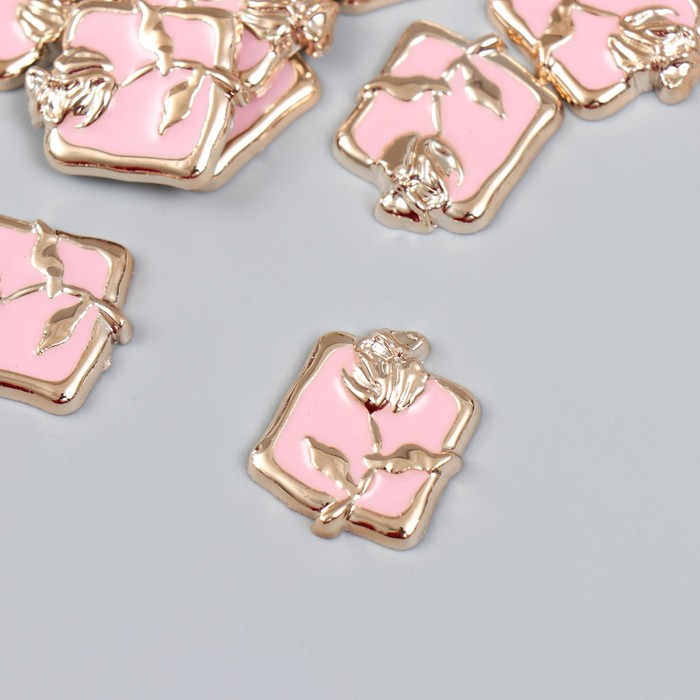 Декор для творчества пластик «Цветок розы в квадрате», розовый, золото, 0.3×1.9×2.3 см