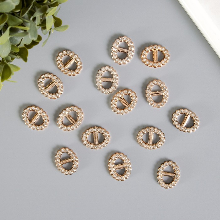 Декор для творчества пластик пряжка «Овал», золото со стразами, 2.3×1.9×0.2 см