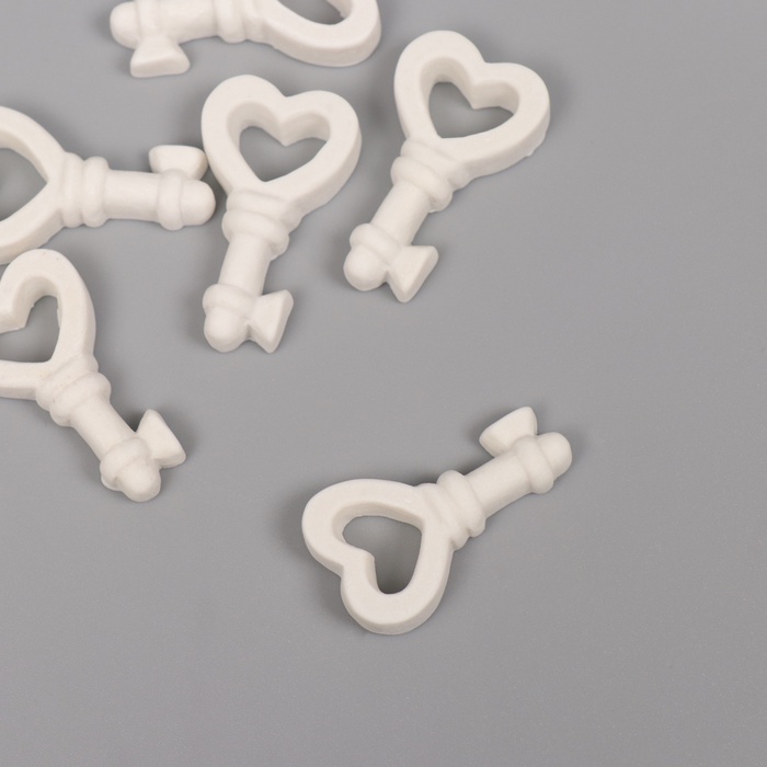 Декор для творчества полистоун «Ключик с сердечком», белый, набор 6 шт., 2×3 см