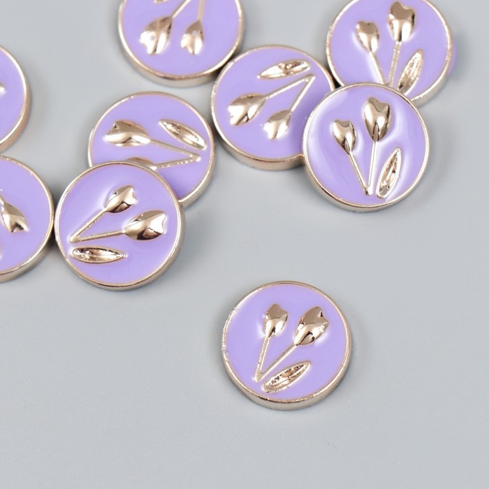 Декор для творчества пластик «Тюльпаны-сердечки в круге», фиолетовый, золото, 0.3×1.8×1.8 см