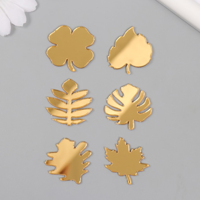 Декор для творчества пластик зеркальный «Листья», набор 6 шт.