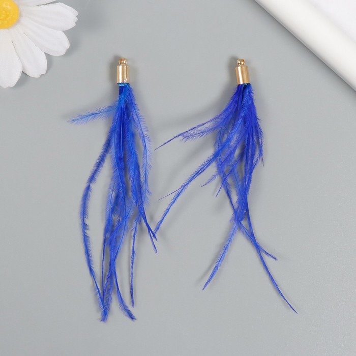 Декор для творчества перо «Кисть Страус», набор 2 шт., синий, 9×0.5 см